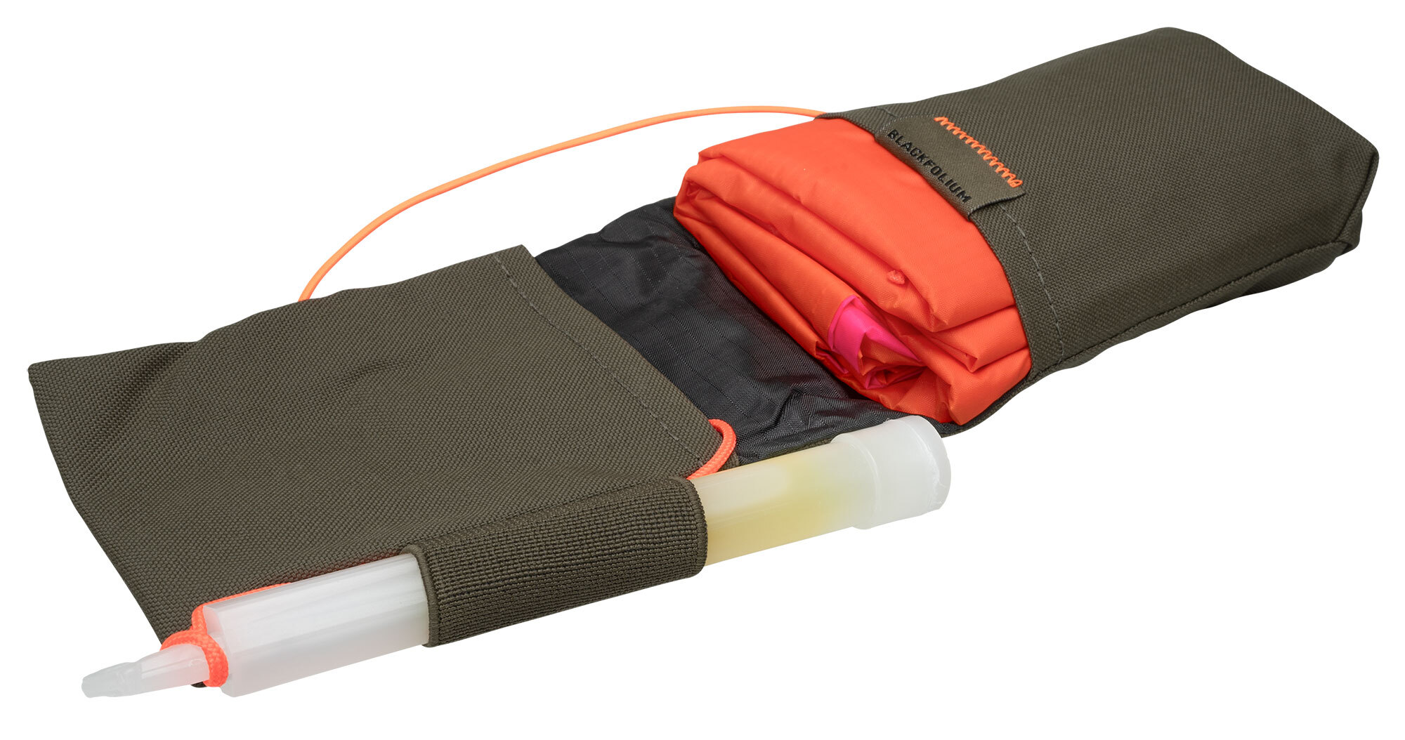 The GTAS from Blackfolium is a compact signaling tool kit. With its dimensions and light weight, it was originally developed for tactical use, but the GTAS is also useful for other outdoor activities. The GTAS weighs only about 180g, which is partly due to the fact that extra lightweight and waterproof rip-stop fabric was used to save volume and weight. The signal panel is two-tone (orange/magenta), making it possible to give different signals.
