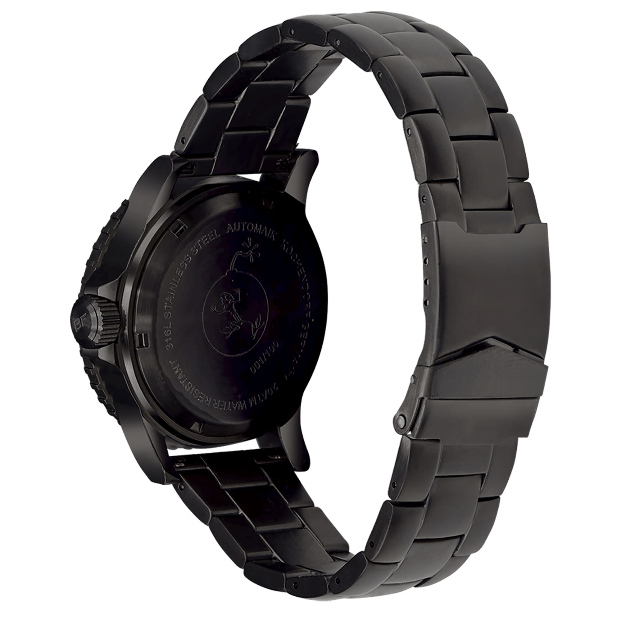 Water resistance up to 300m. The black case back and the black date