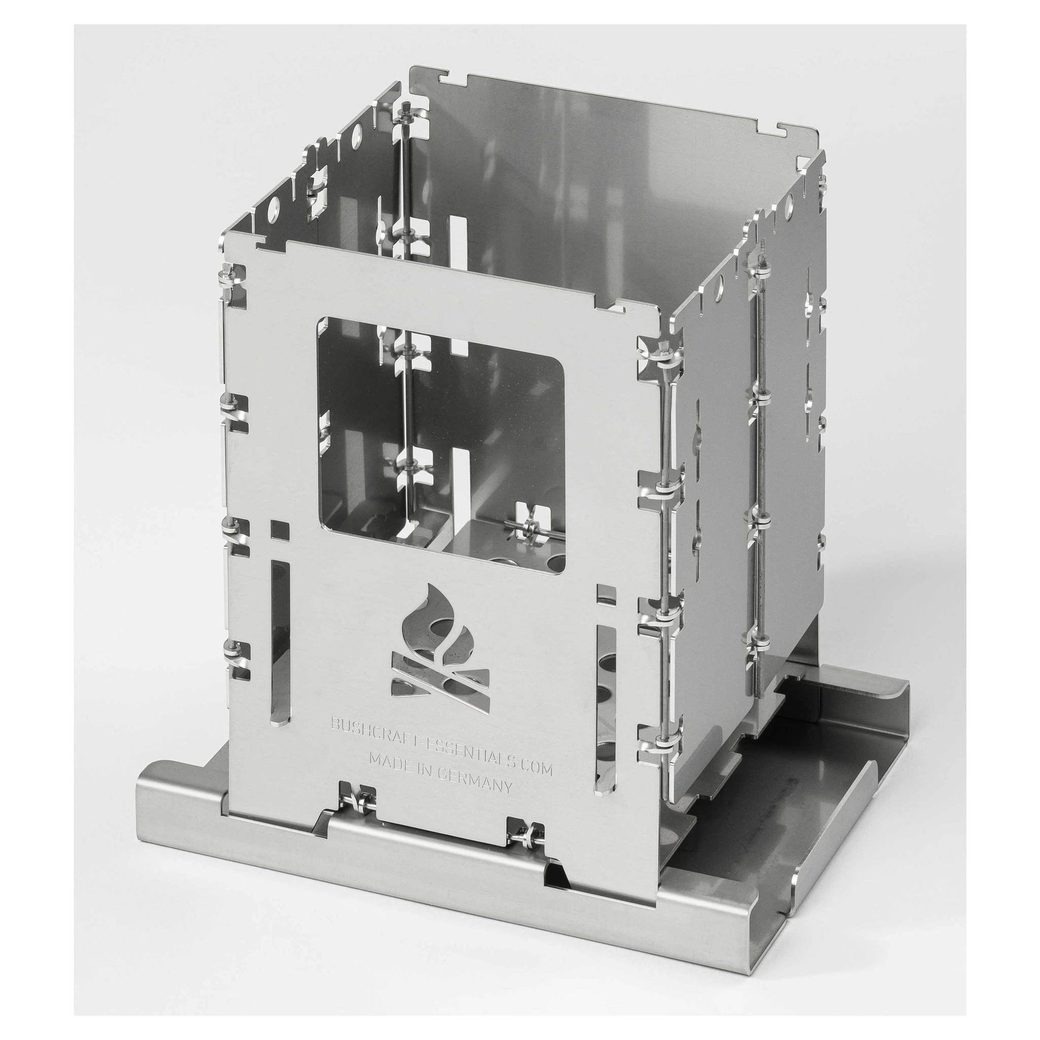 Этот многофункциональный ящик Bushcraft Essentials впечатляет своими практическими функциями, а также облегчает приготовление пищи с уже работающим Bushbox LF. Его можно, например, безопасно и сэкономить место в небольшом инструменте, чтобы его можно было без проблем транспортировать в рюкзаке. Вставной блок также служит прочным основанием, которое можно защелкнуть в выемках всего одним движением. Таким образом, не только создается необходимая устойчивость на неровной поверхности, многофункциональная вставка также защищает печь от углей и улавливает остатки возгорания. Эти аксессуары полезны даже при разжигании огня, так как вы можете использовать их, чтобы вырезать палочки из перьев или очистить кору.