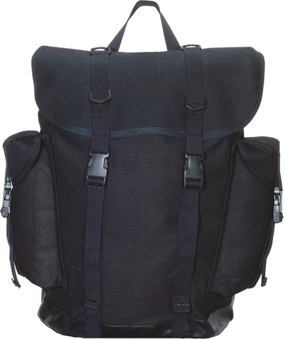 Very solid backpack made of sturdy cotton. The 28 liter volume is clearly divided into 2 side pockets and a main compartment with a flat pocket - suitable for BW folding mat.