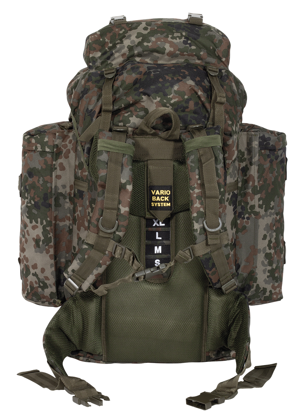 Large backpack with removable side pockets. The BW Mountain has a comfortable and height-adjustable carrying system with integrated aluminum frame for stabilization. The large 80 liter main compartment is accessible from the top and via the sleeping bag compartment. The two side pockets with 10 liters each can be used individually or zipped together as a daypack. In addition to the lid compartment, the BW Mountain also has attachment straps and MOLLE webbing for attaching additional gear.