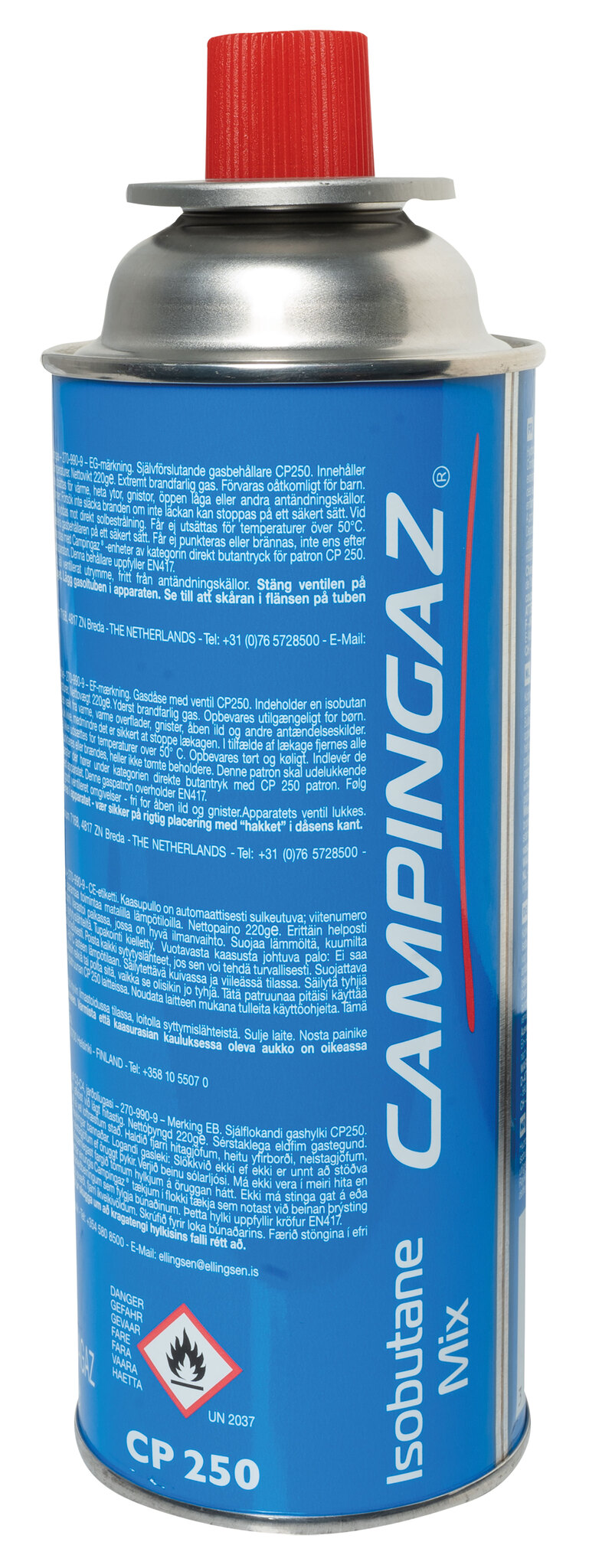 For use with Campinggaz Bistro Activ, Bistro 250 and Festivio appliances. Isobutane gas. Specification: 250 g.