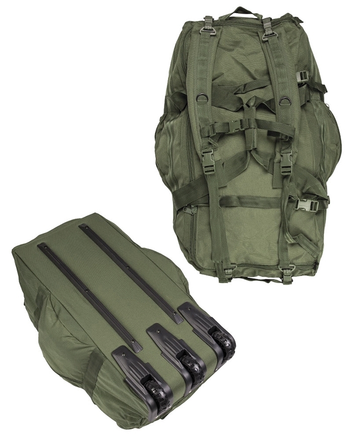 The combat duffel bag, equipped with wheels and backpack straps, is specially designed for longer missions.