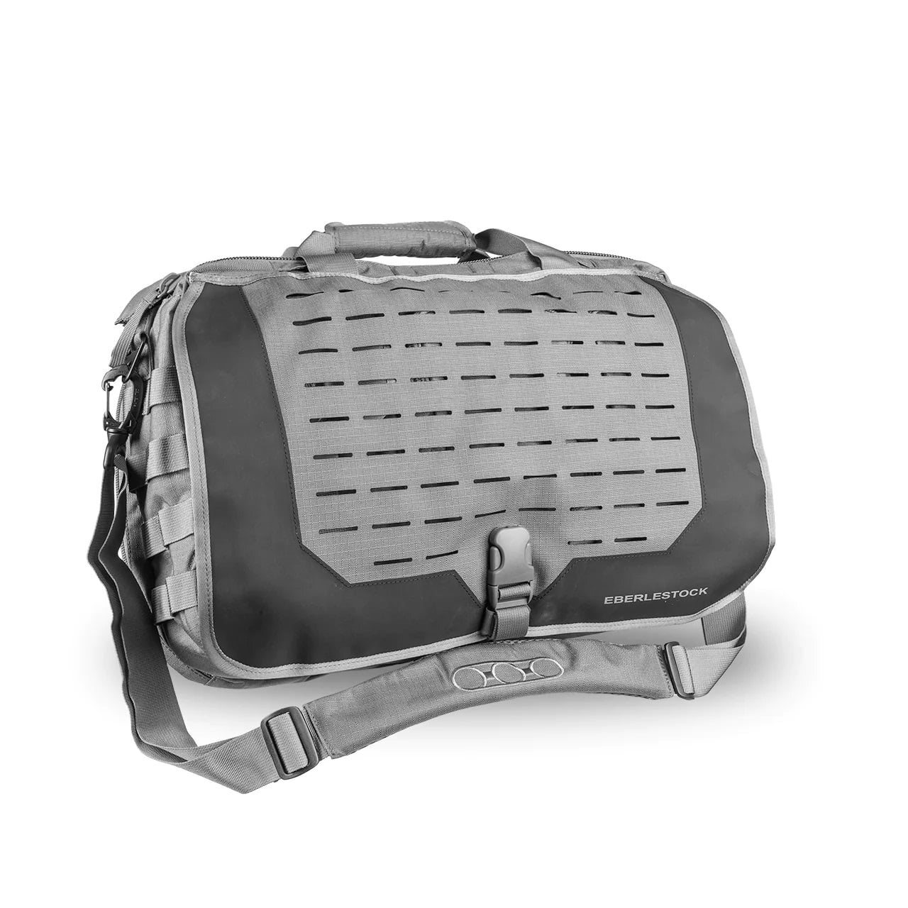 The Combat Office is the ultimate brief case for the road warrior. A tandem zipper easily opens the barn-door top, revealing a generously sized main compartment. An adjacent laptop compartment comprises the bulk of the remaining interior volume, but there are many more hidden secrets to this bag; it provides the kind of maximum versatility that you expect from Eberlestock. A Hypalon reinforced laser-cut MOLLE outer flap covers an array of 4 zip-or-buckle pockets mounted to a divider panel. Inside this divider is a nice organizer pocket, with dual-purpose compartments for phones/magazines (the kind for weapons; you can of course put the kind you read in several other places in the bag), as well as pen sleeves and small organizers.