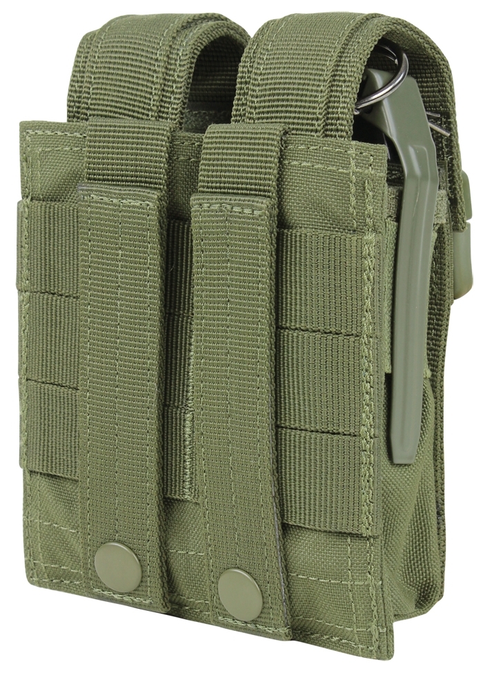 Condor Double Flashbang Pouch with height adjustable cover flap with clip closure and MOLLE attachment system.