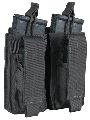 Condor Double Kangaroo Mag Pouch magazine pouch for two M4/ M16 magazines with rubber pull safety and two 9mm pistol magazine pouches.