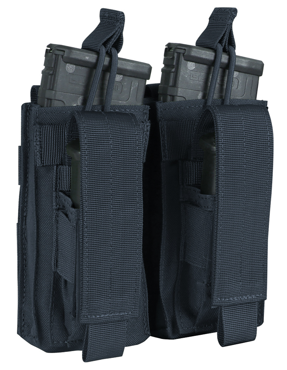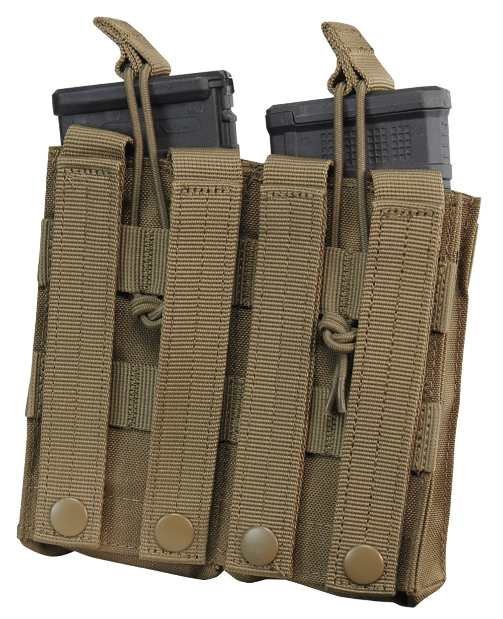 Condor Double Kangaroo Mag Pouch magazine pouch for two M4/ M16 magazines with rubber pull safety and two 9mm pistol magazine pouches.