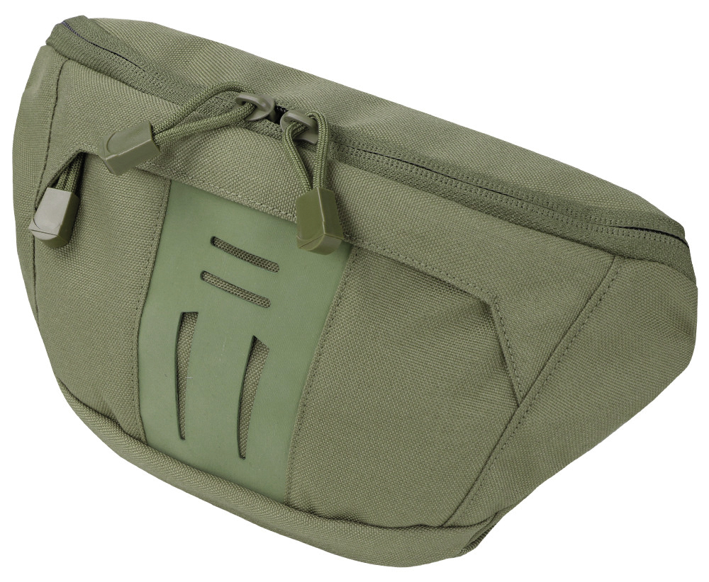 The Condor Draw Down Waist Pack is an all-purpose waist pack that is also suitable for concealed carry of handguns. The bag can be worn with the detachable waist belt or attached directly to a belt or MOLLE webbing (e.g. plate carriers and vests). It has a total of three zippered compartments. The back wall of the large main compartment is equipped with Velcro, which allows it to hold equipment and holsters with hook and loop.