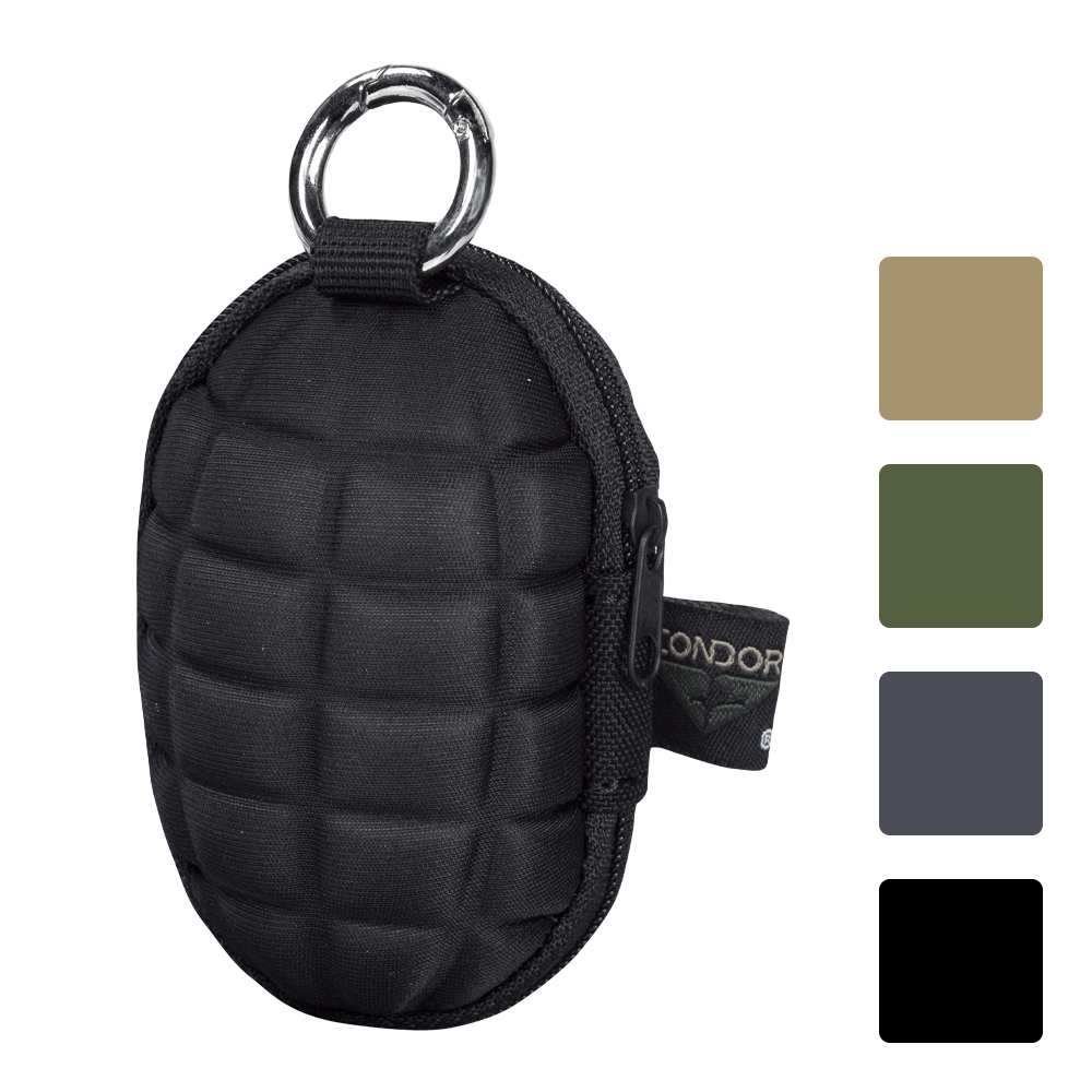 Original key and change case in the design of a hand grenade made of molded neoprene foam with a cover of polytex (polyester).