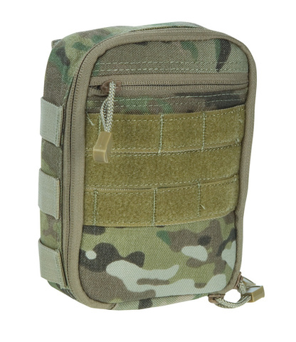 Condor equipment bag MA64 with wide opening zipper and adjustable lid, internal compartment and elastic bands. External Molle straps, Velcro area for identification and a zippered compartment.