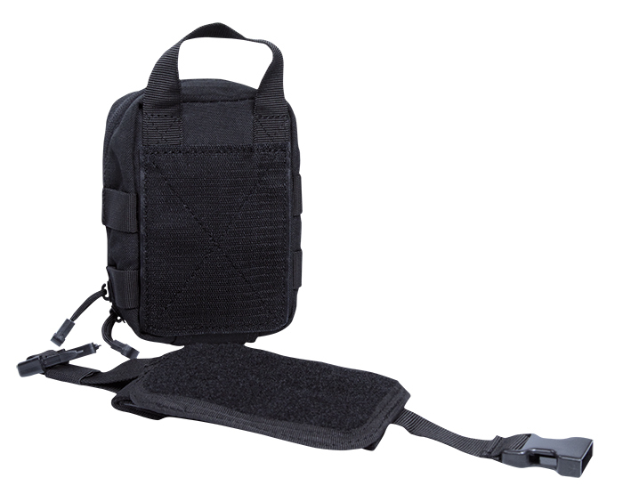 The compact Condor Rip-Away EMT (Emergency Medical Technician) Lite First Aid Bag is attached to a MOLLE mounting platform with Velcro and is secured with webbing with a quick release buckle. In emergency situations, the bag can be quickly pulled from the platform. With internal attachment loops and a slide-in pocket, the bag provides space for a first aid kit.