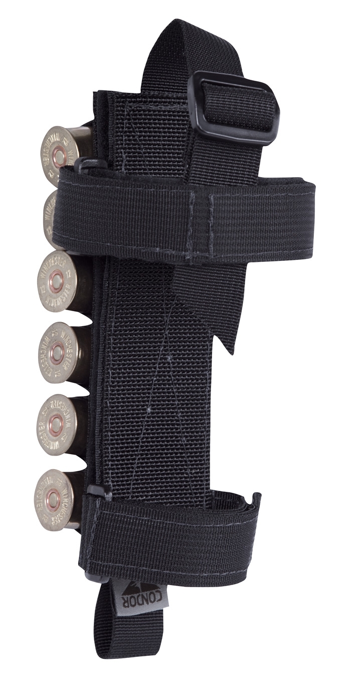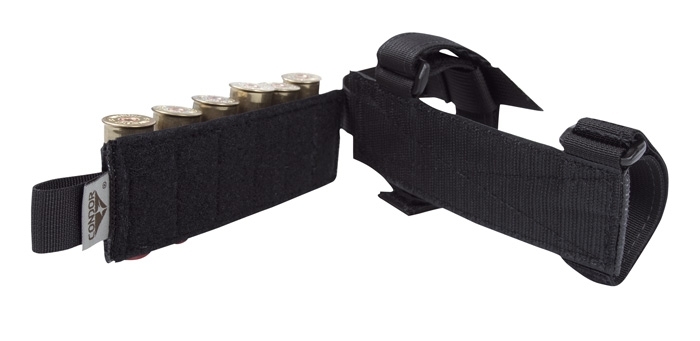 The Condor buttstock shell platform can be mounted on standard or extendable stocks and accommodates a 6 shotgun cartridges, adjustable webbing for a snug fit