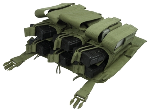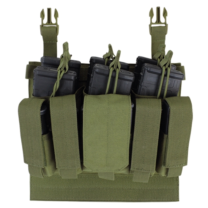 The Condor Vanquish Armor System (VAS) Recon Mag Pouch offers the possibility to hold 6 pieces of 5.56 x 45mm M4 magazines (Including PMAGs, SA80, HK416, ...) and 6 pistol magazines. The panel attaches to the front of the VAS Plate Carrier (824160) with Velcro and clips.
