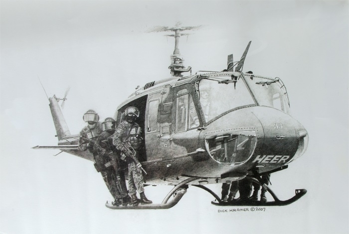 The American artist Dick Kramer is internationally known as a great draftsman of tactical units in impressive dynamics and representational power.