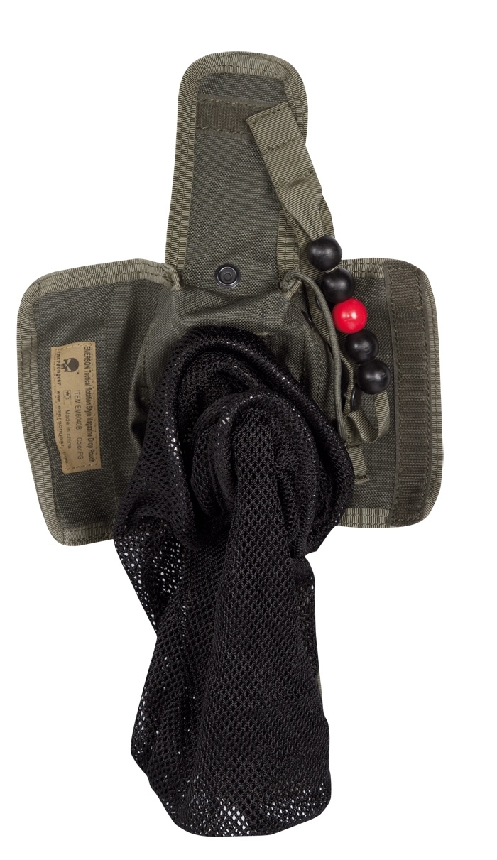The Drop Pouch can quickly store empty magazines or other utensils, a plastic ring keeps the pouch open,