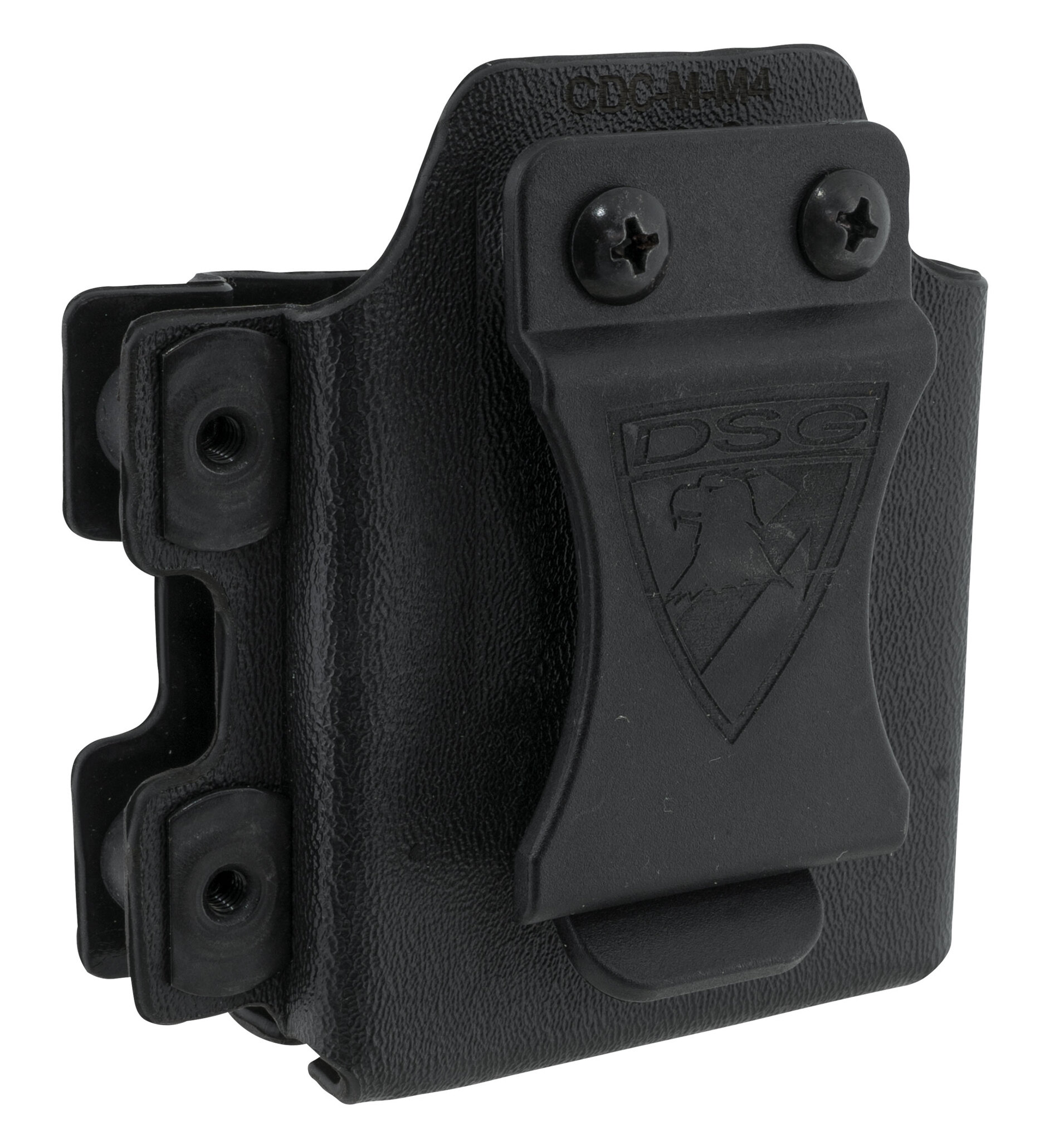The DSG CDC Kydex Mag Carrier for AR15 and M4 magazines has a scratch resistant PI structure for higher heat resistance. The draw resistance can be individually adjusted and the magazine can be placed in the carrier in either direction (forward or rearward facing).