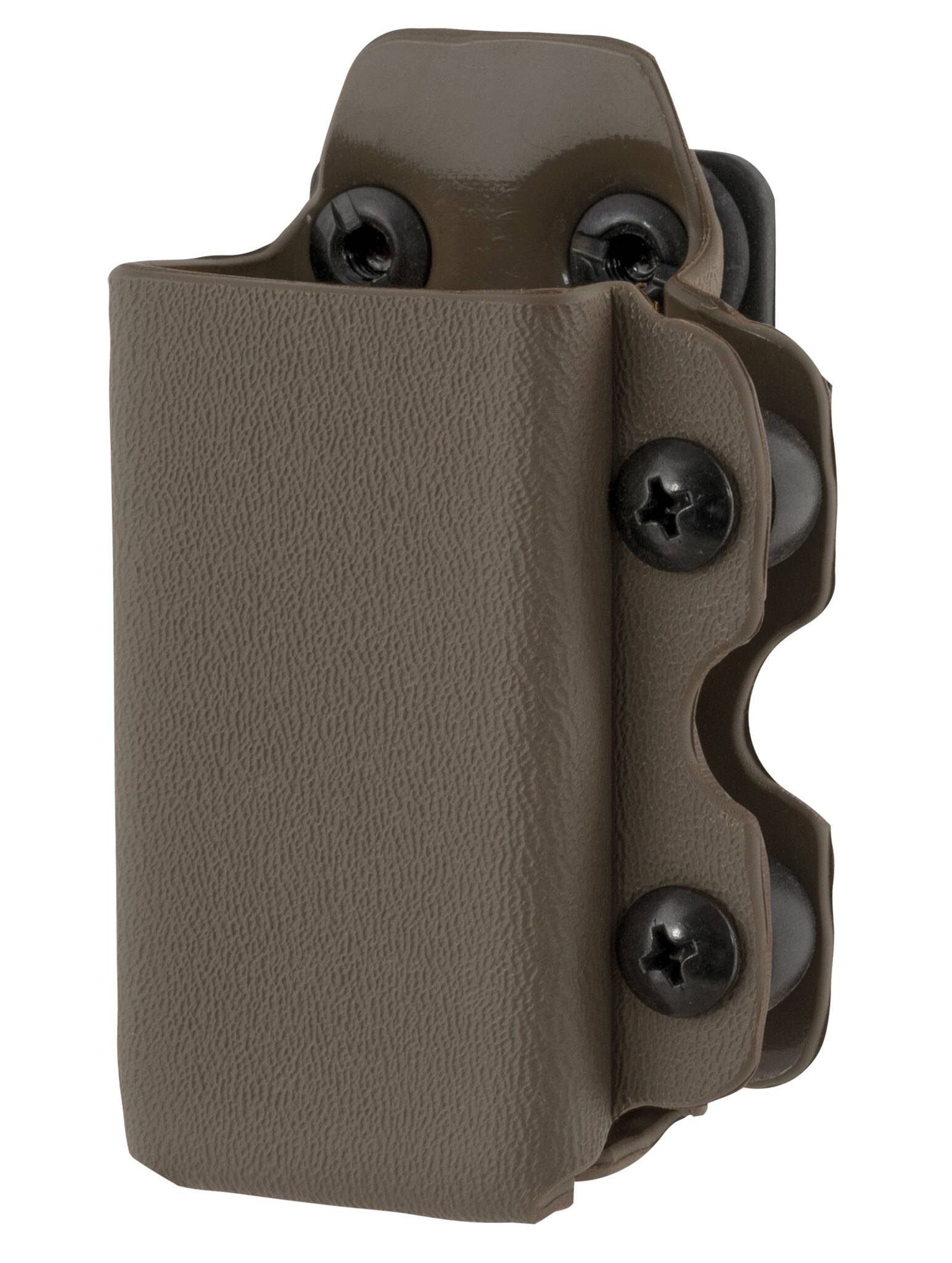 The DSG CDC Kydex Mag Carrier for Glock 43/Shield magazines has a scratch resistant PI structure for higher heat resistance. The draw resistance can be individually adjusted and the magazine can be placed in the carrier in either direction (forward or rearward facing).