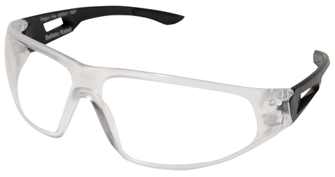 Dragon Fire safety glasses from Edge Tactical Safety Eyewear, with ballistic tested, triple anti-scratch, clear polycarbonate lenses with standard anti-fog coating. Dragon Fire lenses are tested to EN166 F CE, ANSI Z87.1 + 2015 and MCEPS (Military Combat Eye Protection Systems) GL-PD 10-12. The lenses filter 99.9% of UVA/UVB/UVC radiation. The frame is made of indestructible TR-90 nylon polyamide, EN166 S CE tested.