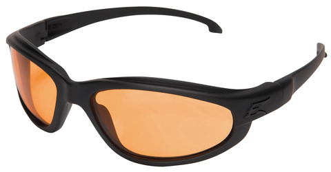 Falcon TT safety glasses from Edge Tactical Safety Eyewear, with ballistic tested, triple anti-scratch, copper colored polycarbonate Tiger's Eye lenses with unique Vapor Shield anti-fog technology. The Falcon TT lenses are tested to EN166 F CE, ANSI Z87.1 + 2015 and MCEPS (Military Combat Eye Protection Systems) GL-PD 10-12. The lenses filter 99.9% of UVA/UVB/UVC radiation. The wrap-around frame with rubberized temple tips fits comfortably and tightly on the head and is made of indestructible TR-90 nylon polyamide, EN166 S CE tested. The Falcon TT (Thin Temple) temples are extra thin and are great for wearing under hearing protection or helmets