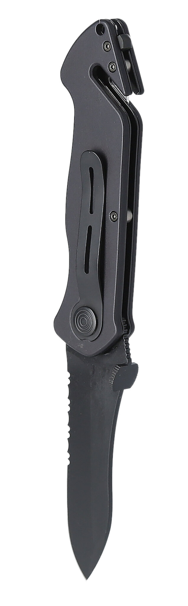 Eickhorn rescueungemsser with partial serrated edge, belt cutter and disc shatterer.