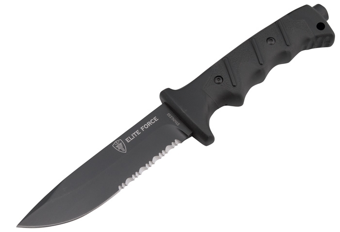 Elite Force EF 703 Kit is a survival knife with partial serrated edge and an overall length of 26 cm. In addition, the other equipment includes a belt cutter.