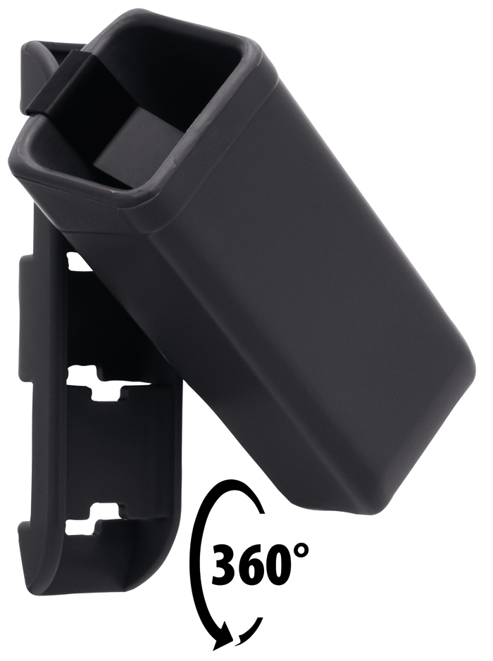 The magazine pouch can be rotated 360° and allows the magazine to be quickly pulled from the side. The ESP magazine pouch is suitable for double-row 9 mm pistol magazines.