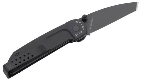 The Extrema Ratio® BF1 has a blued Boehler N690 steel (58HRC) blade with liner lock detent, a flat grind and a thick, durable tip. The handle has characteristically lowered flat areas in the handle and pins that do not protrude from the knife. The replaceable clip is located on the back and allows the knife to be carried discreetly. The BF1 can be completely disassembled for maintenance.