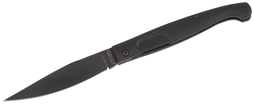 Extrema Ratio made an attempt to revive this traditional design according to its own standards. The Resolza pocket knife has the original dimensions and proportions with a 10 cm blade and is produced with the usual Extrema Ratio high-end materials and technologies. The handle has been redesigned while the blade keeps to the traditional shape. A liner lock blade lock has been added as an improvement to the tradition.