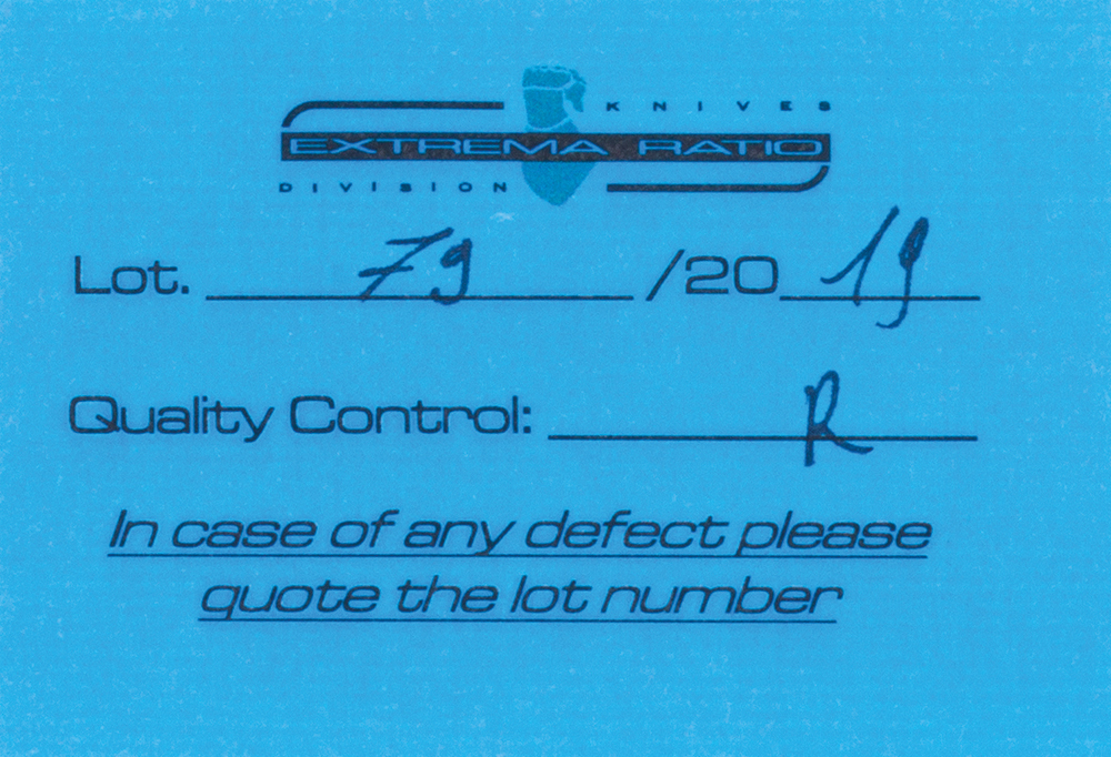 Extrema Ratio® is certified according to UNI EN ISO 9001:2008 and NATO Code (N/CAGE) AD856.