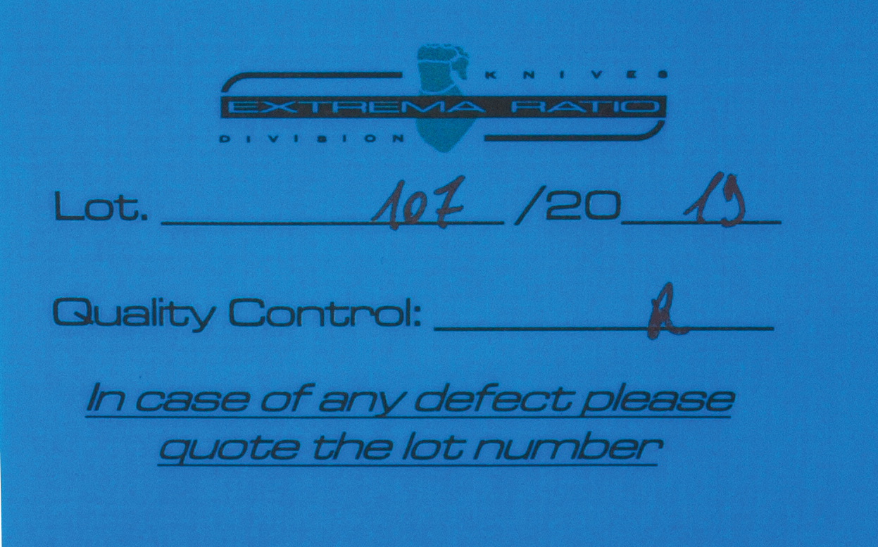 Extrema Ratio® is certified UNI EN ISO 9001:2008 and NATO Code (N/CAGE) AD856.