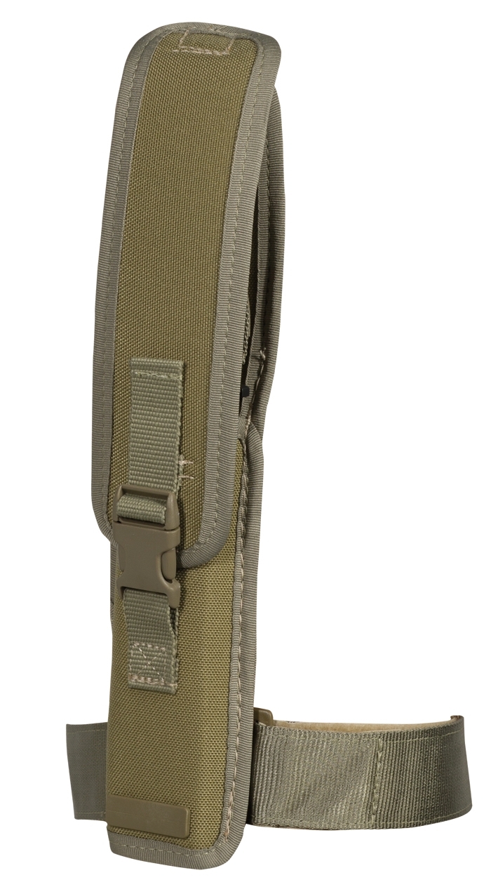 Cordura sheath with MOLLE/ PALS attachment system and thigh strap.