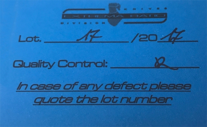 Extrema Ratio® is certified according to UNI EN ISO 9001:2008 and NATO Code (N/CAGE) AD856.