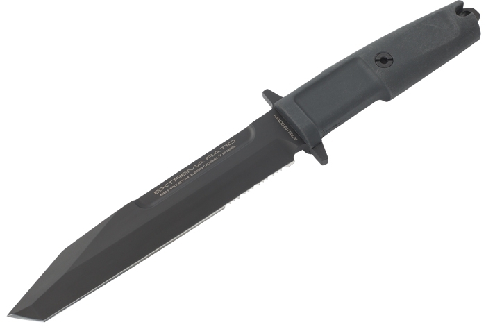 The Extrema Ratio® Fulcrum is a milestone in multipurpose knives, with a partial serrated edge and tanto blade.