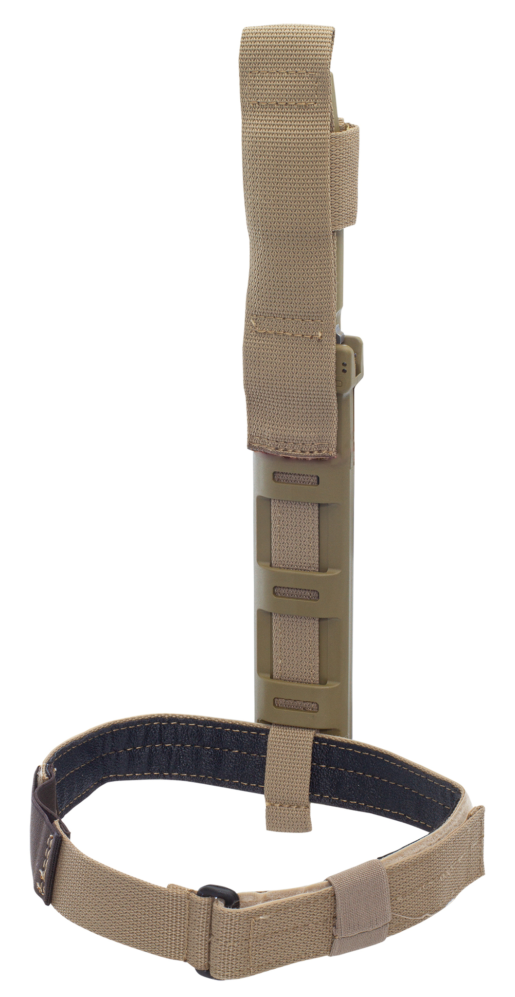 The Extrema Ratio Giant Mamba has a 6.3mm thick, 58 HRC Boehler N690 steel tanto blade with a smooth edge and full length. The forprene handle is secured by a threaded tang that makes the knife sturdy and well balanced. The injection molded nylon with impact quality, MOLLE compatible sheath features a shock absorbing system to prevent rattling, a double button safety loop, a rubberized thigh strap and a retention safety that is released by simply pressing the trigger-like lever. The new knife line minimizes strength and bulk without sacrificing ruggedness and safety.