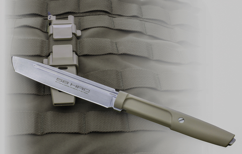 The very lightweight Extrema Ratio® Mamba has a very slim blade in classic Tanto style and a Molle compatible Kydex sheath.