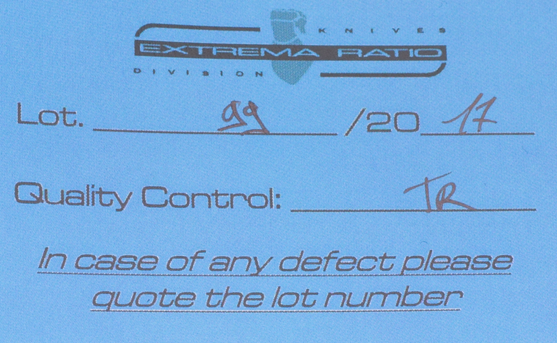 Extrema Ratio® is certified according to UNI EN ISO 9001:2008 and NATO Code (N/CAGE) AD856.