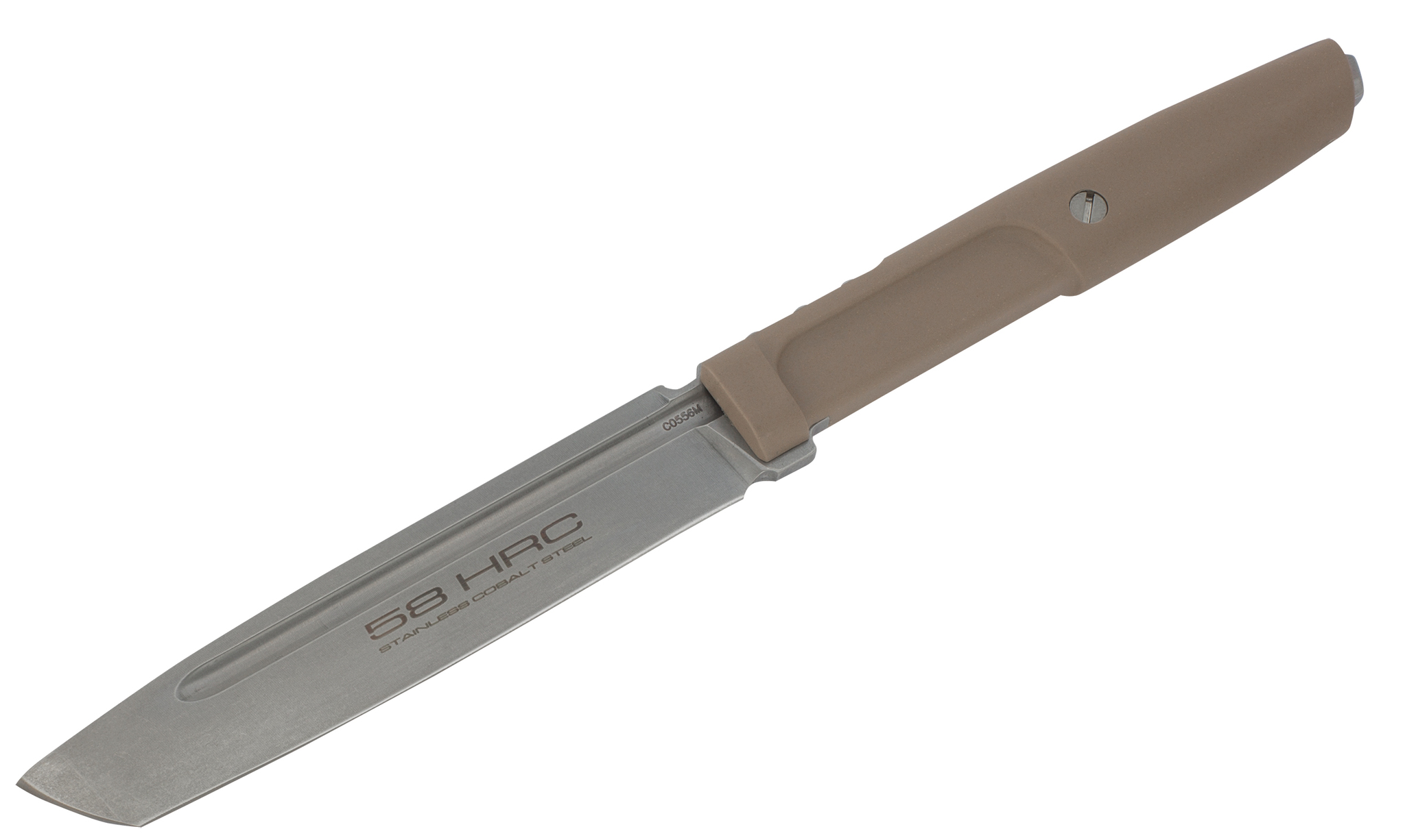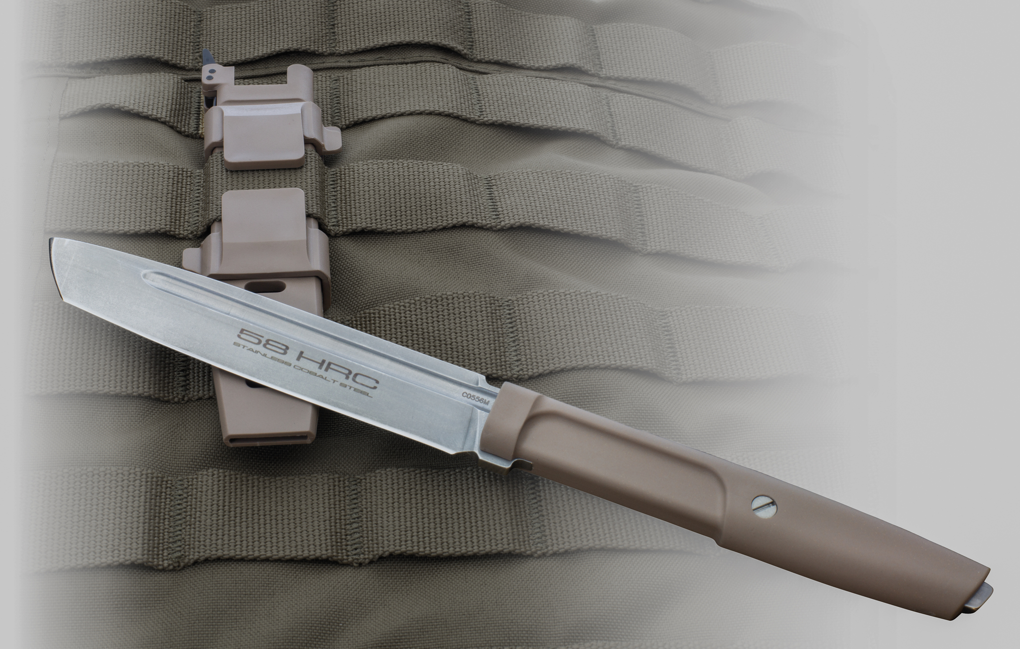 The very lightweight Extrema Ratio® Mamba has a very slim blade in classic Tanto style and a Molle compatible Kydex sheath.