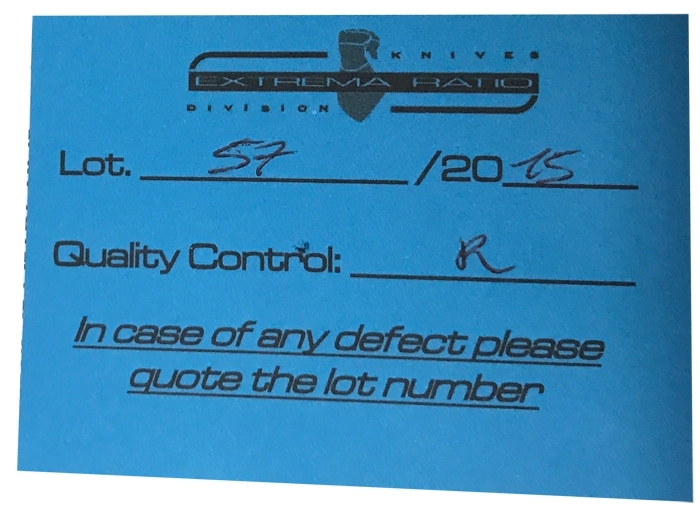 Extrema Ratio® is certified according to UNI EN ISO 9001:2008 and NATO Code (N/CAGE) AD856.
