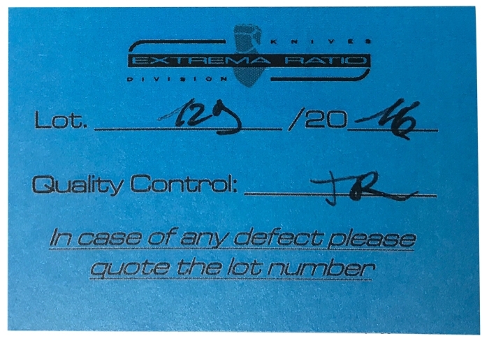 Extrema Ratio® is certified according to UNI EN ISO 9001:2008 and NATO Code (N/CAGE) AD856.
