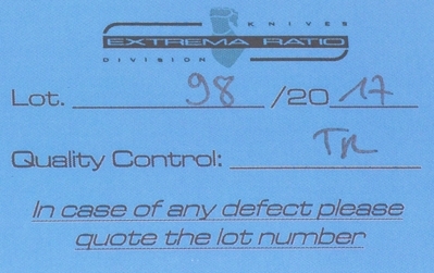 Extrema Ratio® is certified according to UNI EN ISO 9001:2008 and NATO Code (N/CAGE) AD856.