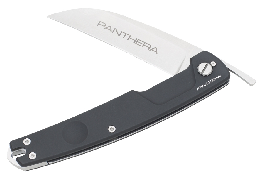 The Extrema Ratio Panthera has a blade in Wharncliff shape, which can be opened with the index finger like a classic razor.