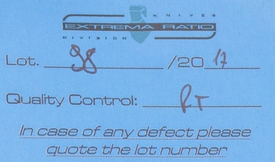 Extrema Ratio® is certified UNI EN ISO 9001:2008 and NATO Code (N/CAGE) AD856.