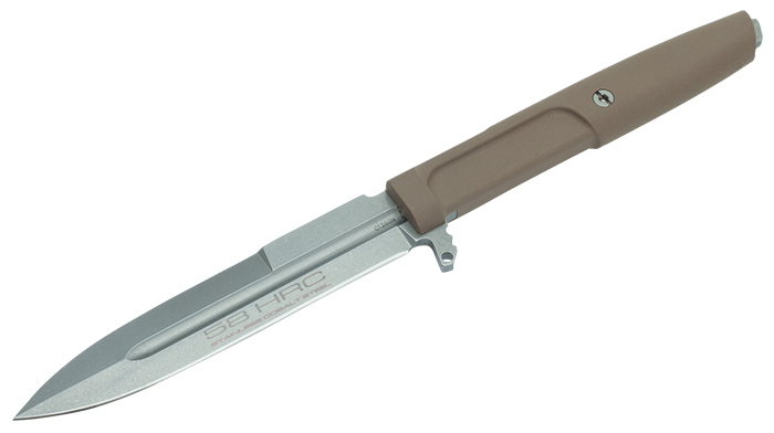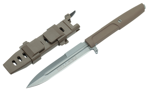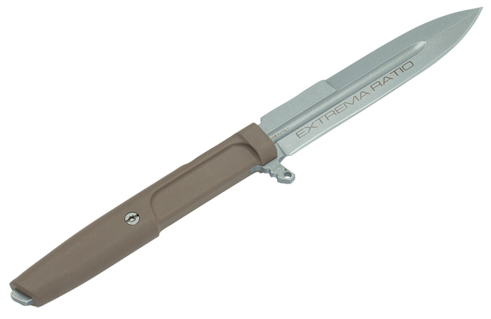 The very lightweight Extrema Ratio® Requiem has a very slim single edge blade and a Molle compatible plastic sheath.