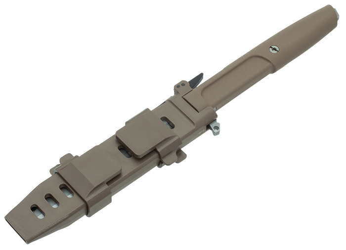 The very lightweight Extrema Ratio® Requiem has a very slim single-edge blade and a MOLLE-compatible plastic sheath. The innovative Kydex sheath has a safety lock that can be operated with the thumb to ensure quick removal in one fluid motion. The sheath is also equipped with a MOLLE/ PALS attachment system.