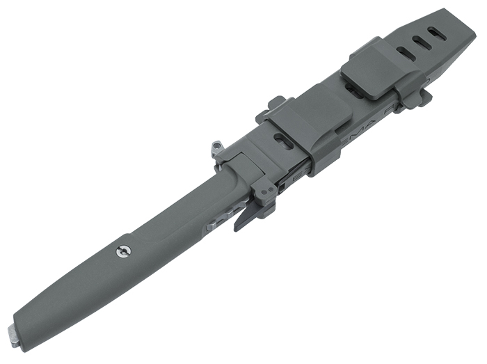 The very lightweight Extrema Ratio® Requiem has a very slim single-edge blade and a MOLLE-compatible plastic sheath. The innovative Kydex sheath has a safety lock that can be operated with the thumb to ensure quick removal in one fluid motion. The sheath is also equipped with a MOLLE/ PALS attachment system.