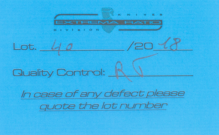 Extrema Ratio® is certified according to UNI EN ISO 9001:2008 and NATO Code (N/CAGE) AD856.