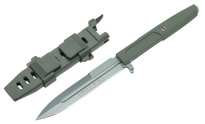 The very lightweight Extrema Ratio® Requiem has a very slim single edge blade and a Molle compatible plastic sheath.