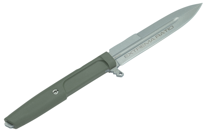 The very lightweight Extrema Ratio® Requiem has a very slim single-edge blade and a MOLLE-compatible plastic sheath. The innovative Kydex sheath has a safety lock that can be operated with the thumb to ensure quick removal in one fluid motion. The sheath is also equipped with a MOLLE/ PALS attachment system.
