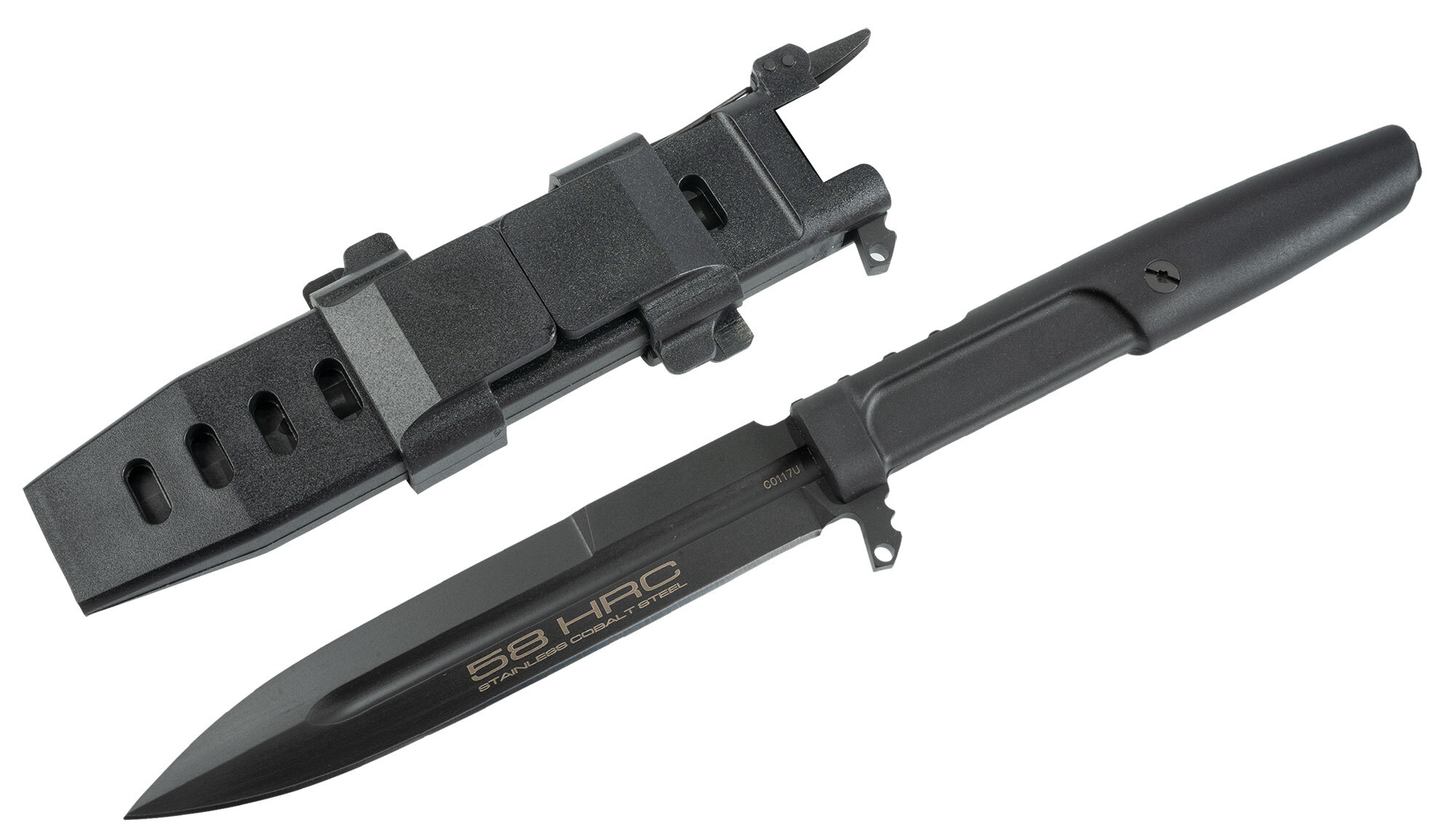 MOLLE compatible Kydex sheath with safety lock.