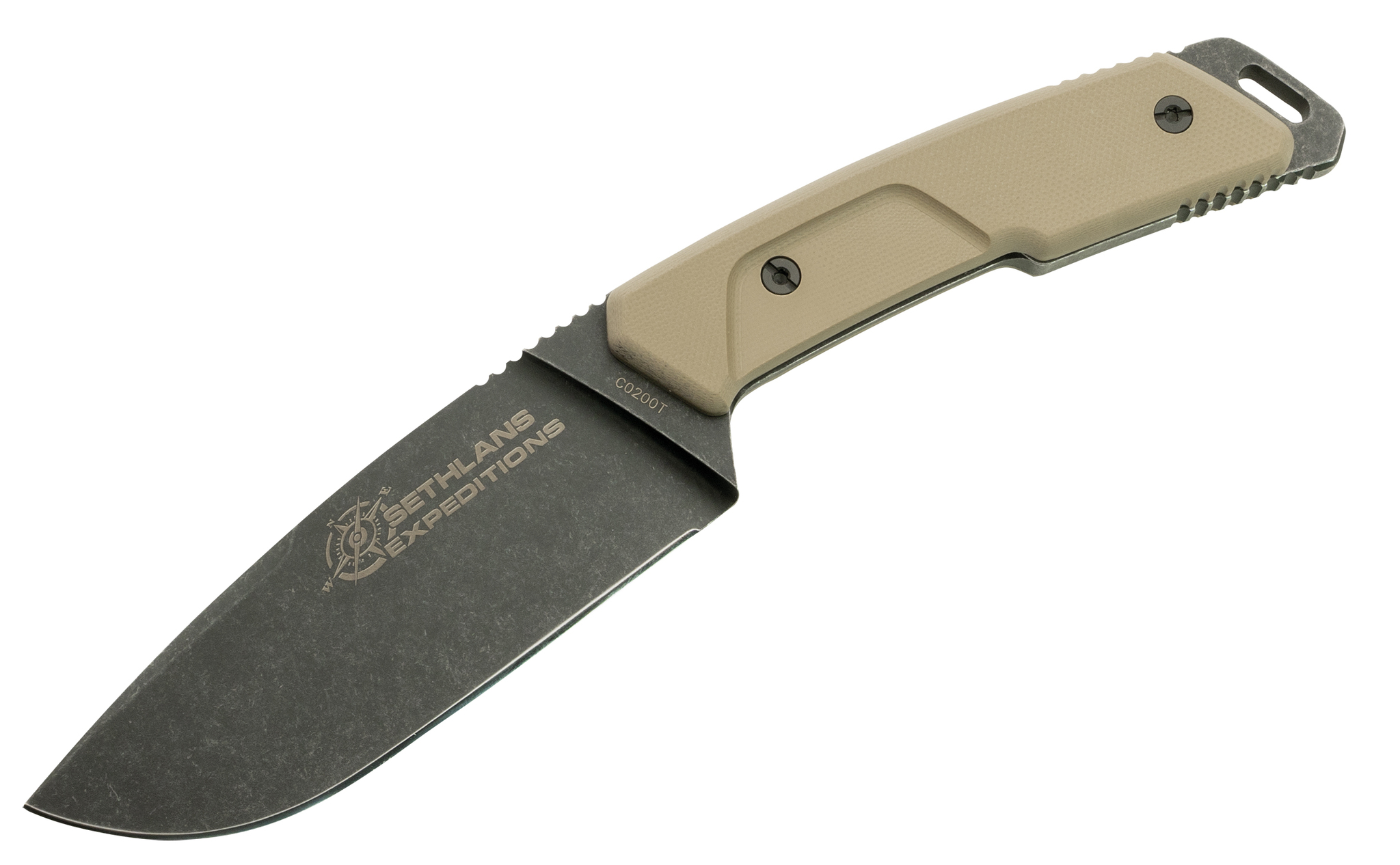 The Extrema Ratio Sethlans Expeditions was developed in collaboration with Daniele Dal Canto, Master Advanced F.I.S.S. Instructor (Italian Federation of Sports and Experimental Survival). It has a blade made of BoeHLER N690 (58HRC) steel with MIL-C-13924 bluing and a superficial dark stone finish.